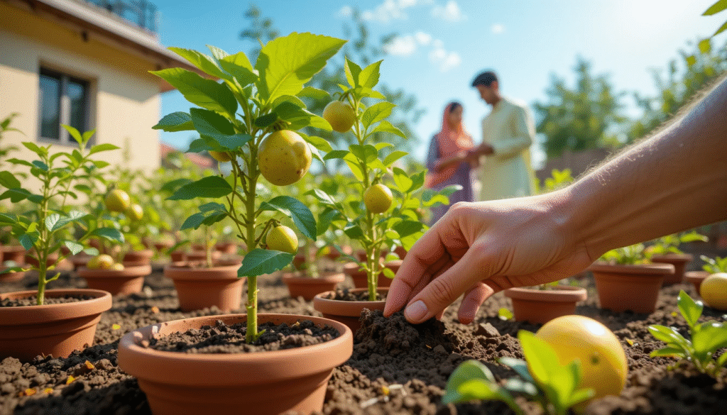 👉 Tip: Lemon plants thrive in clay pots and need regular watering during hot summers.